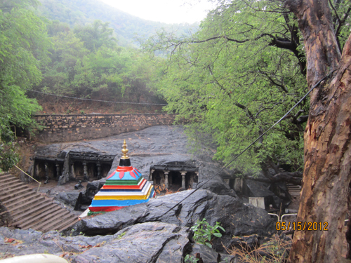 ఒక కొండమీదకి మెట్లు వున్నాయి. పైన ఏమున్నదంటే దుర్గాలయం అన్నారు. అలసిపోయుండటంతో ఎక్కలేదు. ఇంకో చిన్న కొండమీదకి మెట్లు..లక్ష్మీ, అన్నపూర్ణాలయాలనే బోర్డు కనబడింది. పైకి వెళ్తే చిన్ని గుహ, మనిషి కూర్చుని వెళ్ళాలి లోపలికి.. లోపల 2, 3 కూర్చోవచ్చు. లోపల లక్ష్మీదేవి, అన్నపూర్ణేశ్వరీదేవి చిన్న విగ్రహాలున్నాయి. అక్కడ పూజారిగారు శ్రీ కాశీరెడ్డి నాయనగారి శిష్యులు. ఆయన ఈ ప్రాంతం గురించి చెప్పిన విశేషాలు
