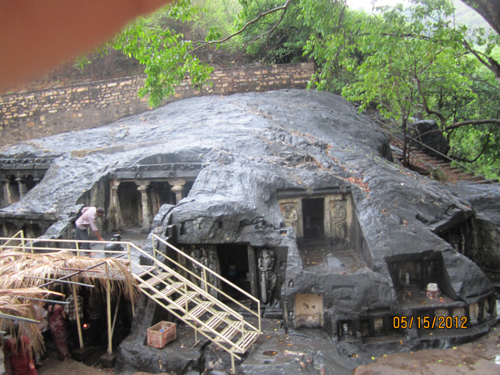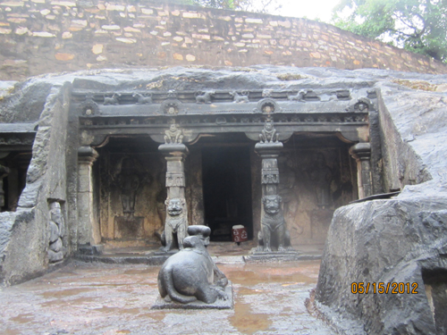 ఒకే కొండరాతిలో చెక్కిన తొమ్మిది గుహాలయాలు. అన్నీ శివాలయాలు. అవి శశినాగ, రుద్రేశ్వర, విశ్వేశ్వర, నగరికేశ్వర, భార్గేశ్వర, రామేశ్వర, మల్లికార్జున, పక్షమాలిక లింగ. గుహలంటే మరీ లోతుగా వుండవు. మనం లోపలకు వెళ్ళక్కరలేకుండానే దైవ దర్శనం చేసుకోవచ్చు. ఆ గుహాలయాల వెలుపల అందమైన శిలా మూర్తులు. భారత దేశంలో ఎక్కడా బ్రహ్మ, విష్ణు, మహేశ్వరులను ఒకే చోట పూజించే ఆలయాలు వున్నట్లు లేదు. కానీ ఇక్కడ మాత్రం, త్రిమూర్తులు ఒకే చోట కొలువైవున్నారు. శివునికోసం చెక్కిన ఈ గుహాలయాలలో శివుడు మధ్యన గర్భగుడిలో లింగరూపుడై పూజలందుకుంటుంటే, ఆలయ ప్రవేశ గోడమీద బ్రహ్మ, విష్ణువుల విగ్రహాలు చెక్కి వున్నాయి. ప్రతి ఆలయానికి ముందు ఎడమవైపు విఘ్నేశ్వరుడు, కుడివైపు ఆలయం చెక్కిన శిల్పి (పూజారిగారు చెప్పారు..ముందు మేము కుబేరుడనుకున్నాము), విగ్రహాలుంటాయి. ఈ ఆలయాలన్నీ ఒకే శిల్పి చేత చెక్కబడటం విశేషం.