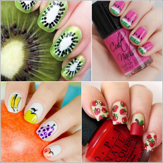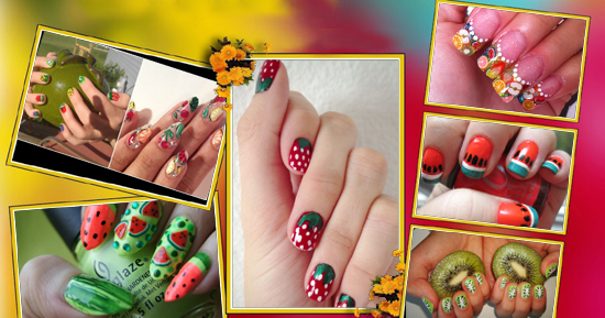 ఈ రకమైన నెయిల్ ఆర్ట్ లో రకరకాలుగా డిజైన్స్ వేస్తున్నారు బ్యూటీషియన్లు. గోళ్లపై పండ్ల ఆకారాలను అద్దడం ఒక రకమైతే... పండ్ల ముక్కల్ని గోళ్లమీద అతికించారా అన్నట్టుగా వేసే డిజైన్లు మరో రకం. మరో రకం కూడా ఉంది. పండ్ల ఆకారంలో గోటిని వదిలేసి మిగతా భాగమంతా పెయింట్ చేస్తుంటారు. అదనపు ఆకర్షణ కోసం స్టోన్స్, కుందన్స్ అతకడం కూడా జరుగుతోంది. చక్కని రంగులు, అద్భుతమైన డిజైన్లతో నఖ సౌందర్యం రెట్టింపవుతోంది. సిటీస్ లో అయితే ఆల్రెడీ పెయింట్ చేసిన ఆర్టిఫీషియల్ నెయిల్స్ కూడా దొరుకుతున్నాయి. వీటిని కొనుక్కుని జస్ట్ అలా గోళ్లకు అతికించేసుకోవడమే. స్కిక్కర్స్ రూపంలో కూడా దొరుకుతున్నాయి.