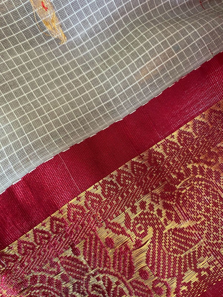 (A vintage kuttu saree that is almost 30 years old. It still remains in tact.)