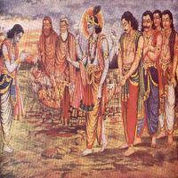 గ్రస్తుడు ఒక రాక్షసుడు. శాపవశాత్తూ కీటకముగా జన్మించాడు. ‘తను బ్రాహ్మణుడును’ అని కర్ణుడు పరశురాముని వద్ద అస్త్ర, శాస్త్ర విద్యలు నేర్చుకుంటున్న సమయాన ఒకరోజు కర్ణుడి తొడ మీద పరశురాముడు తల వుంచి నిద్రపోతుంటాడు. ఆ సమయాన కీటక రూపంలో వున్న గ్రస్తుడు కర్ణుడి తొడను తొలవడం ప్రారంభిస్తాడు. అయితే పరశురాముడికి నిద్రాభంగమవుతుందనే ఉద్దేశంతో కర్ణుడు కదలక అలాగే కూర్చుంటాడు.