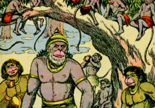 ఆ వానరాలు చేస్తున్న అల్లరికి దదిముఖుడి సైన్యం అక్కడికి వచ్చింది, వాళ్ళని చావగొట్టి తమ వెనుక భాగాలు చూపించారు. ఆ తరువాత వచ్చిన దదిముఖుడిని కూడా చావగొట్టారు. అప్పుడాయన ఏడుస్తూ సుగ్రీవుడి దగ్గరికి వెళ్ళి జరిగిన విషయం అంతా చెప్పాడు. దదిముఖుడు సుగ్రీవుడితో వానర బాషలో ఏడుస్తూ మాట్లాడుతున్నాడు, మధ్య మధ్యలో హనుమ అంటున్నాడు. దదిముఖుడి మాటలు వింటున్న సుగ్రీవుడి తోక పెరుగడం మొదలైంది. (వానరాలు ఏదన్నా సంతోషకరమైన వార్త వింటె తోకలు పెంచుతారు). ఒక పక్క దదిముఖుడు ఏడుస్తుంటే సుగ్రీవుడు తోక పెంచడం గమనించిన లక్ష్మణుడు కంగారుగా "అసలు ఏమయ్యింది" అన్నాడు.