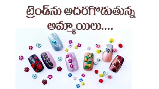 ట్రెండ్ మారుతున్నకొద్ది గోళ్ళ రంగులతో పాటు, వాటి మీద ఉండే డిజైన్స్ కూడా మారుతూ వస్తున్నాయి. అసలే ఒకే రంగు పెయింట్ నెయిల్ పాలిష్ రంగులను వేస్కోవడం, వాటిని తీసేయడానికి మళ్ళీ కష్టపడటం అమ్మాయిలకు చాలా విసుగొచ్చేసింది. దాంతో ఇప్పుడు లేటెస్ట్ గా గోళ్ళపై మెరిసే పూసలు, స్టోన్లు వంటి వాటితో అదరగొడుతున్నారు. ఇలాంటి కొత్త ఫ్యాషన్ వల్ల బ్యూటీషీయన్లకు కూడా అధిక పని, అధిక లాభం వస్తుంది. మరి ఒక్కో డిజైన్ కు 500 నుండి వేల రూపాయల్లో ఉన్నాయంటే మాములు మాటన?