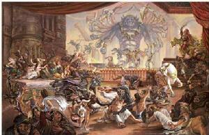 ధర్మరాజు తలపెట్టిన యాగం నిర్విఘ్నంగా పూర్తయింది. యజ్ఞశాల ఆకులు, పూవులు, దీపాలతో సర్వాంగ సుందరంగా అలంకృతమైంది. ఎక్కడ చూసినా తీర్చిదిద్దిన ముగ్గులు, కళాకృతులతో ఉజ్వలంగా వెలిగిపోతోంది. పూవులు, సుగంధ ద్రవ్యాల పరిమళాలతో వాతావరణం ఎంతో ఆహ్లాదకరంగా ఉంది. వివిధ వాయిద్యాల సమ్మోహన స్వరాలూ, గాయనీగాయకుల మధుర గానామృతంతో సందడిగా,కోలాహలంగా ఉంది.