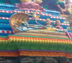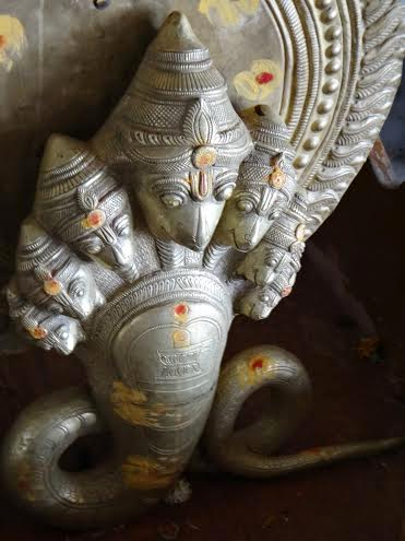 ఇంక పైన, ఏడు పడగలు విప్పిన నాగేంద్రుని రూపాన్ని దర్శించవచ్చు. విగ్రహం చివరి భాగంలో వున్న సింహధ్వజము నరసింహ స్వరూపంగా విష్ణు తత్వాన్ని సూచిస్తుంది. ఇది శ్రీకృష్ణదేవరాయ విజయనగర సామ్రాజ్య రాజముద్రగా భావింపబడుతోంది. స్వామికి ఇరువైపుల నెమలి పింఛాలతో కూడివున్న చక్రాలు స్వామివారి వాహనం మయూరాన్ని సూచిస్తుంది. అంతేకాదు కాలగమనంలో పంచ భూతాలు, సంవత్సర, ఆయన, ఋతు, మాస, పక్ష, తిధి, వార, నక్షత్రాలను సూచిస్తాయి.