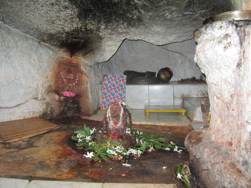 గర్భాలయం ముందు పెద్ద నంది వున్నది. గర్భాలయం స్వతఃసిధ్ధంగా ఏర్పడిన గుహ. ఇందులో కొలువు తీరిన శ్రీ ఉమా సంగమేశ్వరస్వామి భక్తుల కోర్కెలు తీర్చే చల్లని తండ్రి. ఇక్కడి విశేషమేమిటంటే ఈ స్వామికి అభిషేకించిన నీరు గర్భాలయంలోనే భూమిలో ఇంకిపోతుంది. బయటకి రాదు. ఎటు వెళ్తందో తెలియదు. ఇంకొక విశేషం…శ్రావణ మాసంలో గర్భగుడిలో కిందనుంచి వచ్చిన నీరుతో గర్భాలయమంతా నిండిపోతుంది. ఒక్కోసారి ఆనీటితో శివలింగం కూడా మునిగిపోతుంది. తర్వాత మళ్ళీ ఆ నీరు దానంతట అదే తగ్గిపోతుంది.