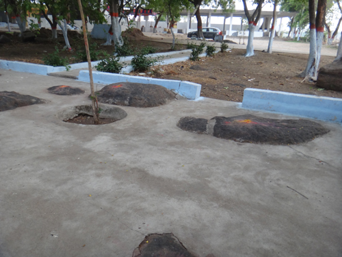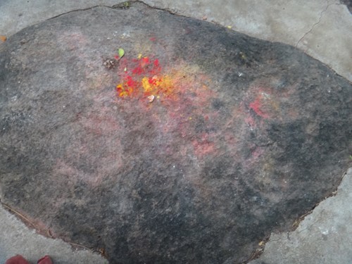 ఆవరణలోనే స్వామికి కొంచెం దూరంలో పాదాల ముద్రలు వున్నాయన్నారు. అక్కడ ఏనుగు పాదాలు, స్వామి పాదాలు వున్నాయట. స్వామి ఏనుగెక్కి వచ్చారని భక్తులు విశ్వసిస్తారు. అక్కడ కూడా పసుపు, కుంకుమలతో పూజ జరగటంతో మాకు సరిగా ఆనవాళ్ళు కనబడలేదుగానీ శ్రీ మదుసూదనరావుగారు అనటం స్పష్టంగా కనబడతాయని.