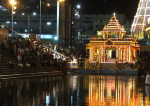 It was time for Tadaatagai to be named the queen of Madurai. Before that, she had to defeat the three worlds - Vaikuntha of Vishnu, Amaravati of the Devas and Kailasa of Shiva. Tadaatagai successfully defeated Lord Vishnu and the Devas but when she came to Kailasa to fight Shiva, she bowed down and accepted defeat. She instantly fell in love with the Lord and her third breast vanished as soon as she saw Shiva. After this, the marriage of the two was performed by Lord Vishnu, which became the biggest event on earth. Following this, Lord Sudereshwara and goddess Meenakshi ruled the kingdom of Madurai and blessed the world with happiness. Even today, their wedding is celebrated annually on Azhakar Thiruvizha festival. So, this is why goddess Parvati is known as Meenakshi Amman and Lord Shiva is known as Sundereshwara in Madhurai. The name Meenakshi has a special meaning. Meena means fish and akshi means eyes. It is a description of the fish like eyes of the goddess. Unlike all other temples around the world, Goddess Meenakshi is the main deity of the temple and not Lord Sudereshwara. The entire city of Madurai is blessed with the beauty of this divine couple.