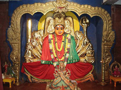 Let us start with the major attraction of the temple. The presiding deity of the 250 year old Bhadrakali Temple, is worshiped in the sitting position, with a crown on her head, different weapons in her eight arm and a fierce face. The deity measures 2.7 X 2.7 meters and is built in the square shape. Though the temple is dedicated to Goddess Bhadrakali, it is believed by the devotees that the goddess has transformed into Tripura Sundari because of the chanting of the holy mantras.