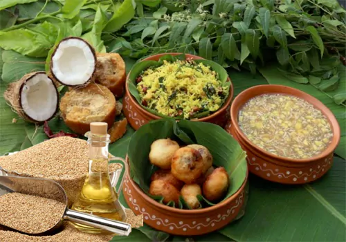 తైలాభ్యంగనస్నానం- ఉగాదినాడు నువ్వుల నూనెతో స్నానం చేయకపోతే నరకానికి వెళ్తారని హెచ్చరిస్తుంటారు పెద్దలు. ఈ మాటల వెనుక కారణం లేకపోలేదు. సంవత్సరంలో కొన్ని సందర్భాల్లో అయినా నువ్వులనూనెని దట్టించి, శరీరాన్ని మర్దనా చేసి, శనగపిండితో శుభ్రం చేసుకోవాల్సిందే. ఈ చర్యతో ఒంటికి పట్టిన మకిలి వదిలిపోతుంది. అంతేకాదు! రుతువు మారే ఉగాది సమయంలో కఫ సంబంధమైన వ్యాధులు పెరిగే అవకాశం ఉంది. నువ్వుల నూనెతో మర్దనా చేయడం వల్ల, ఒంట్లో వేడి పెరిగి ఈ సమస్యలు తీరిపోతాయని చెబుతారు.