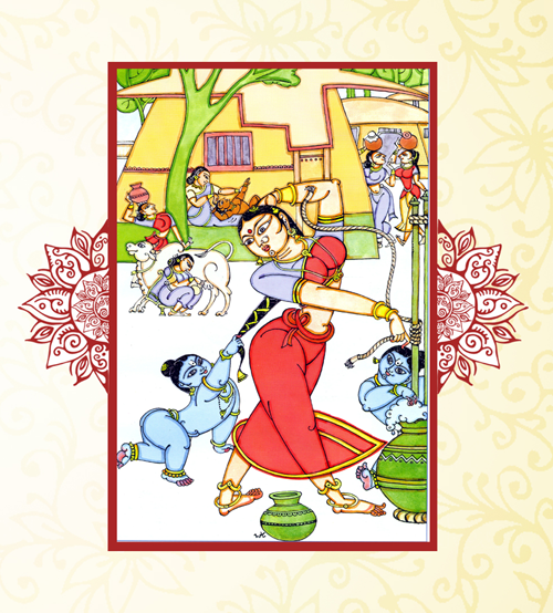 భావం: ఓయీ! పిచ్చిపిల్లా! భరద్వాజ పక్షులన్నీ కీచుకీచుమంటూ చేస్తున్న కలకలములు వినపడలేదా? అదిగో! సువాసనలు వెదజల్లుతున్న కురులుగల ఆ గోప కాంతులు తాము ధరించిన ఆ భరణాలన్నీ ధ్వనించేట్టుగా చేతుల త్రిప్పుచూ కవ్వాలతో పెరుగు చిలుకుతున్నారు. ఆ ధ్వనులేవీ వినబడలేదా? నీవు మాకు నాయకురాలివికద! భాగవద్విషయానుభవము నెరిగినదానవు.