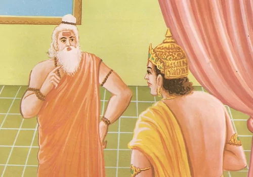 ఆ మాటలు విన్న ఇంద్రుడు "మహర్షీ! నేను నీ దగ్గర కొద్దిగా పని ఉండి వచ్చాను. అది నీవల్లనే కావాలి. 'నువ్వు తప్పకుండా ఆ పని చేస్తాను' అని మాట ఇస్తే, నేను వచ్చిన పని చెబుతాను" అన్నాడు.