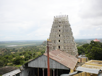 ఆలయం ప్రవేశానికి ఏడంతస్తుల గాలి గోపురంనుంచి వెళ్ళాలి. ఈ గోపురం సుమారు 500 సంవత్సరాల క్రితం రెడ్డి రాజుల కాలంలో నిర్మింపబడింది. ఆలయాన్ని చేరుకోవటానికి కొద్ది మెట్లు ఎక్కాలి. కొండపై శ్రీ వీరాంజనేయస్వామి, గరుక్మంతుల విగ్రహాలను దర్శించవచ్చు. ఆలయం ముందు నలభై అడుగుల ఎత్తయిన ధ్వజ స్తంభము, ముఖద్వారానికి ఇరువైపులా ద్వార పాలకులు జయ విజయుల 6 అడుగుల ఎత్తయిన విగ్రహాలను చూడవచ్చు. దేవాలయము గర్భాలయము, అంతరాలయము, ముఖమండపము, అర్ధ మండపములుగా నిర్మింపబడినది. స్వామి వెలిసిన గుహ అతి ప్రాచీనమైనది....మిగతా నిర్మాణములు తర్వాత చేపట్టబడినవి.