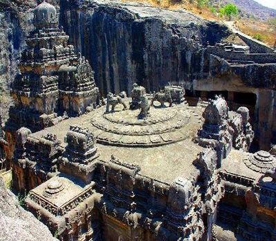 It is the finest example of Dravidian architecture with a unique construction technique. As mentioned earlier, the Kailasa Temple was not built but carved out of one of the 16 caves of the Ellora complex. This carving eliminated 4,00,000 tons of rock to bring out the beautiful shape of the temple. The Kailasa Temple was constructed using a very old technique of downward excavation which seems impractical today.