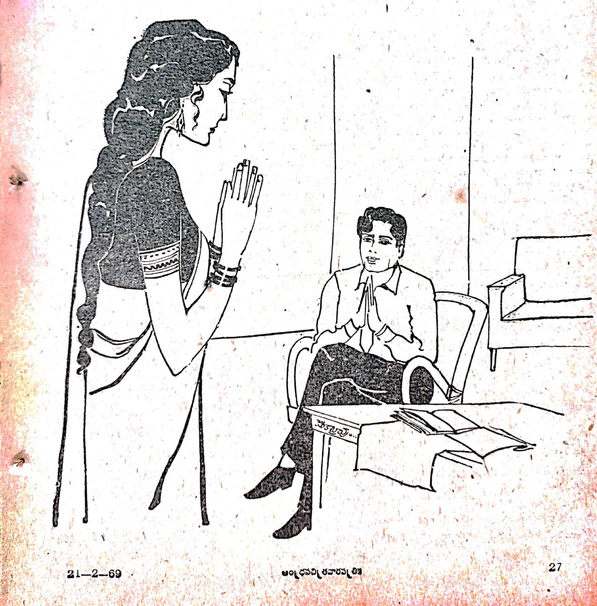 'నమస్కారం .' అంది మర్యాదగా.
