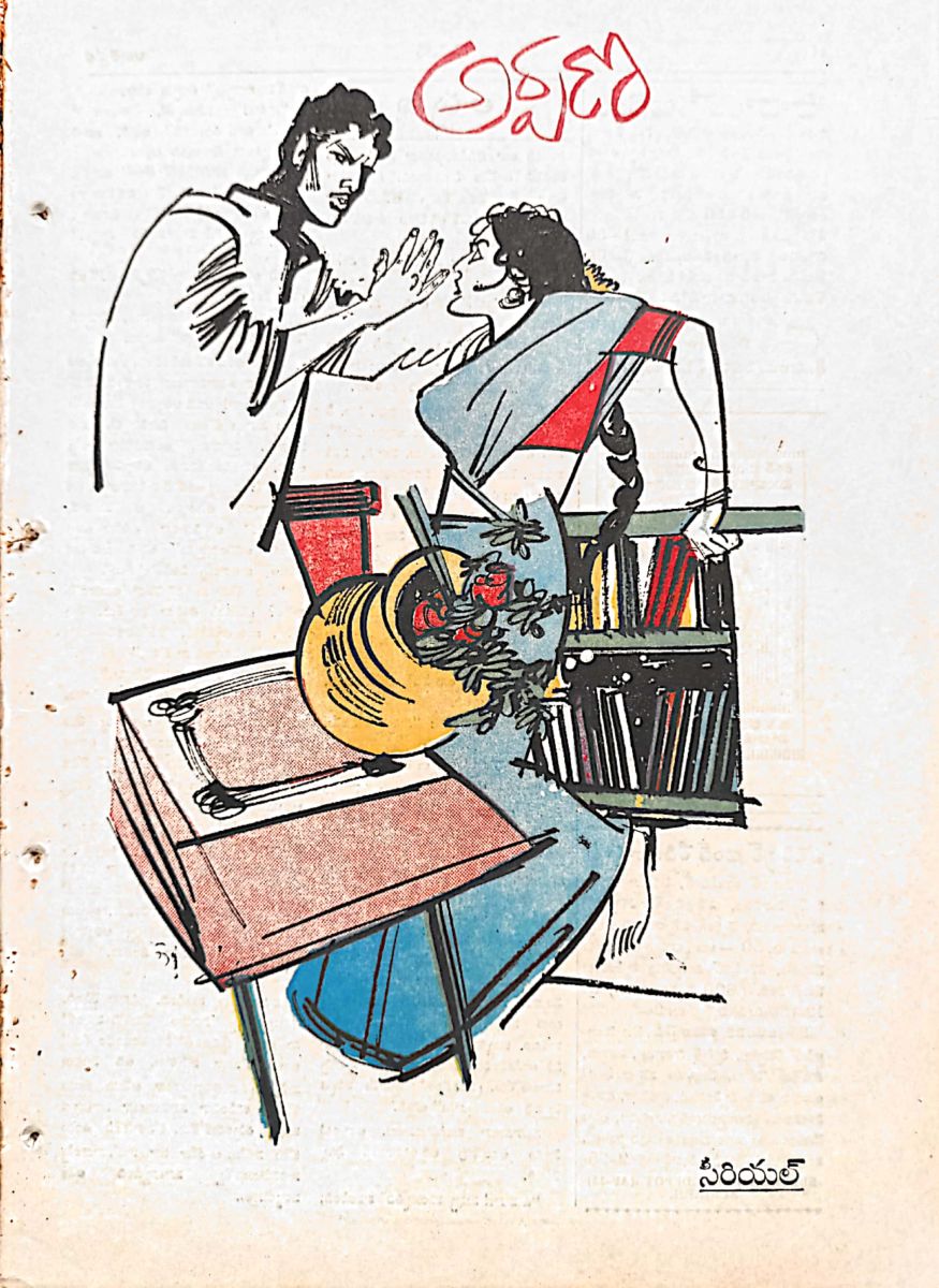 పెదవులు తిప్పుతూ. "నువ్విలాంటి ముఖం పెట్టి కూర్చుంటావని నాకు ముందే తెలుసు , బావా!" అన్నది. తర్వాత మెల్లగా రాజు చేయి తన చేతుల్లోకి తీసుకో బోయింది, అతన్ని గమనిస్తూనే. చెంప దెబ్బ కొట్టినట్లయింది ఒక్కసారిగా. విదిలించి కొట్టాడు.