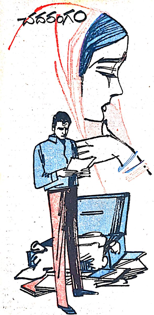 "నా బాబూ, రామూ!" హఠాత్తుగా ఆగిపోయింది రాముదృష్టి. తల్లి అక్షరాలు పలకరిస్తున్నాయి. కవరుమీద తన పేరే. తల్లికి ప్రేమ పొంగినపుడు ఇలాగే పిలిచేది. అప్రయత్నంగా కవరు అందుకొని చింపాడు. అక్షరాల బారులవెంట దూసుకుపోతున్నాయి కళ్ళు.