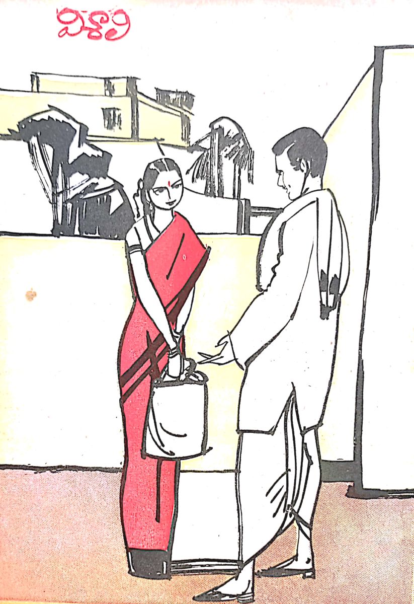 నీళ్ళపొయ్యి అంటించి, వంటింట్లోకొచ్చిన విశాలికి ముందర గదిలో రామం ఎవరితోనో మాట్లాడటం వినిపించింది. 'ఇంత పొద్దున్నే ఎవరా వస్త?' అని అనుకుంటూ ఉండగానే రామం కేకేశాడు. పైట నిండుగా కప్పుకుని ఇవతలికి వచ్చింది విశాలి. ఇంచు మించు ఏభయ్యేళ్ళ వయసుగలావిడ, ముఫ్ఫయ్యేళ్ళ యువకుడు రామాని కెదురుగా నిలబడి ఉన్నారు.