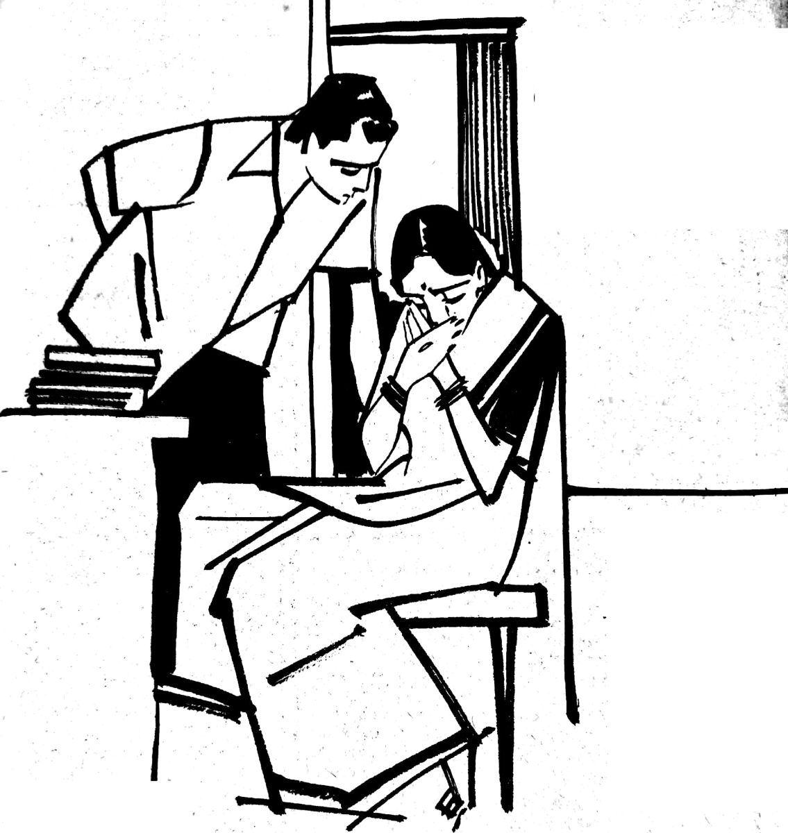 సుధీర ముఖంలో కోప రేఖలు పొడచూపాయి. మెదడులో లెక్కలేనన్ని ఆలోచనలు గిర్రున తిరిగి చికాకు కలిగించాయి. ఆ చికాకులో నుండి ఎన్నో ప్రశ్నలు ఉదయించాయి. కారు భానుమూర్తి యింటి దగ్గర ఆగింది. భానుమూర్తితో పాటు సుధీర కూడా దిగింది.