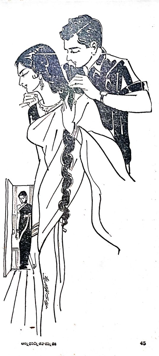 కాని సాహసించలేక పోయాడు...అదే క్షణంలో గుమ్మంలో చిన్నదగ్గు విన్పించింది. దానితో పాటే 'సారీ మిమ్మల్ని డిస్టర్బ్ చేసిసనట్టున్నాను అంటూ వెకిలిగా నవ్వుతూ సరళ వచ్చింది మధురమైన క్షణం కాస్తా చేయి జారి పోయిందనిపించింది లలిత కి.
