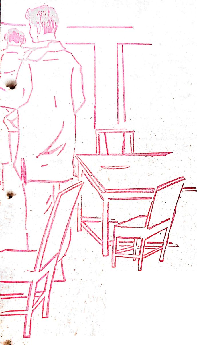 "బలహీనత వల్ల యేవో ఆలోచనలు వస్తాయి. అంతే. "నవ్వాడు." నా గది చూడు నీ రాకకై యెలా వేచి యున్నదో! యేది టై విప్పు.' ఆమె దృష్టి మరో దిక్కుకు మరలించాలనే ఆ మాట అన్నాడు. ఆమె వెంటనే అతని టై విప్పింది. బూట్లూ, డ్రస్సు తీసింది. గదంతా శుభ్రంగా చేస్తుండగా క్రింద నుండి సరస్వతమ్మ కేకలు వినిపించాయి.