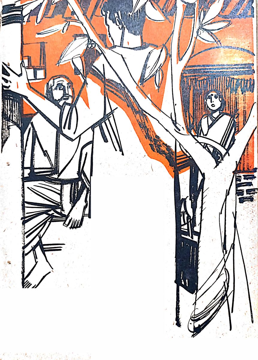 సావిట్లో రాజు. అవతల కుర్చీలో, కూర్చోలేని కంగారులో రామచంద్రయ్య. ఇల్లా ఉండగానే రుక్మిణి వచ్చేసింది. ఒక్కసారి చూచి మాట్లాడ లేకపోయింది.
