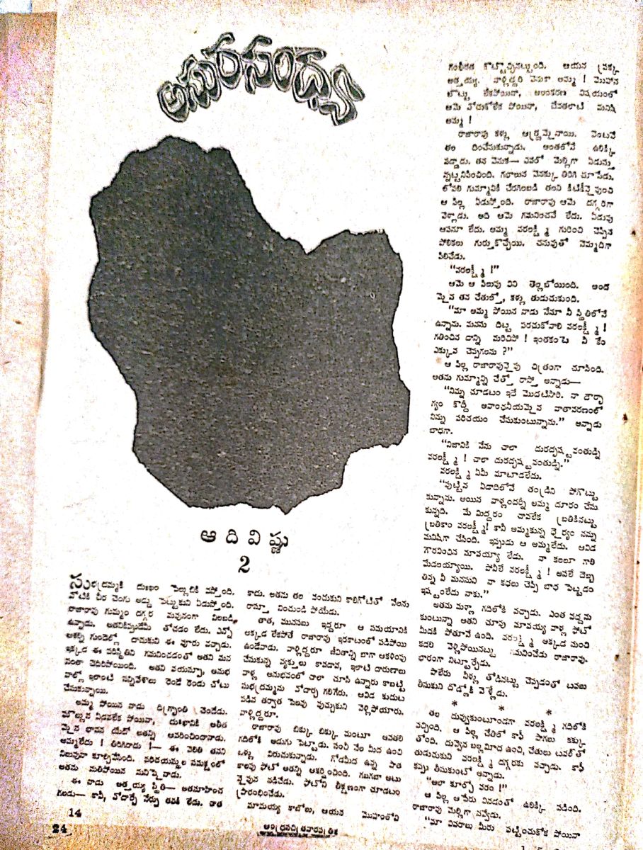 రాజారావు కళ్ళు అర్ధ్రమైనాయి. వెంటనే తల దించేసుకున్నాడు. అంతలోనే ఉలిక్కిపడ్డాడు. తన వెనుకే -- ఎవరో మెల్లిగా ఎడుస్తూన్నట్టనిపించింది. గభాలున వెనక్కు తిరిగి చూసేడు. లోపలి గుమ్మానికి చేరగిలబడి తలని కిటికీ వై వుంచి ఆ పిల్ల ఏడుస్తోంది. రాజారావు ఆమె దగ్గరిగా వెళ్ళాడు. అది ఆమె గమనించనే లేదు. ఏడుపు ఆపనూ లేదు. అమ్మ వరలక్ష్మీ గురించి చెప్పిన పోలికలు గుర్తుకొచ్చాయి. చనువుతో నెమ్మదిగా పిలిచేడు.