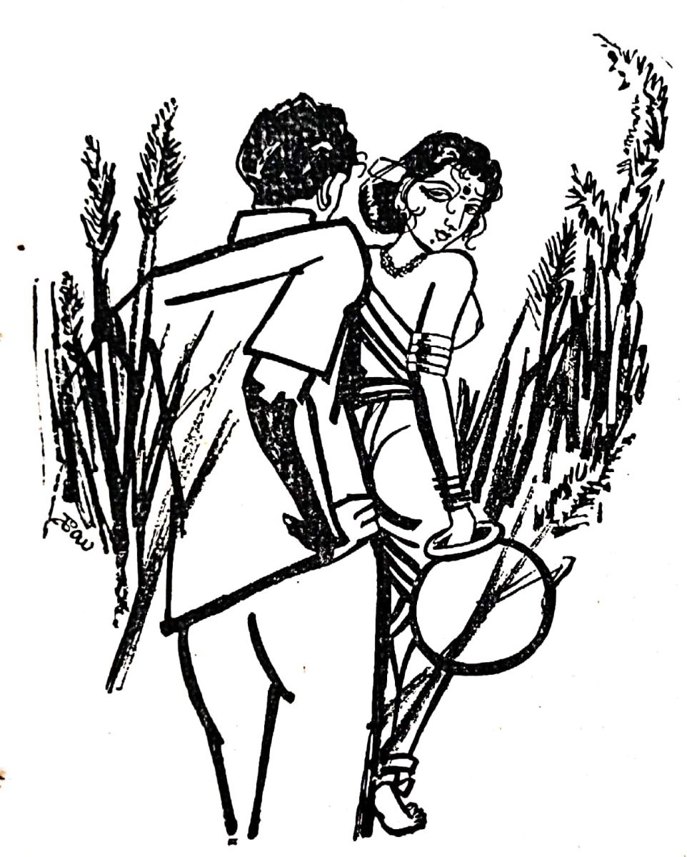 ఆదివారం వచ్చేసింది. ఆ రోజు ఆర్జన అంతగాలేదు. ఇద్దరూ పొలంగట్టుదగ్గర కలుసుకున్నారు. రెండే కొంగలు ఆకాశాన యెగిరి పోతున్నాయ్. అవి వాలితే బాగున్నవి పైకి చూస్తున్నాడు రాముడు.