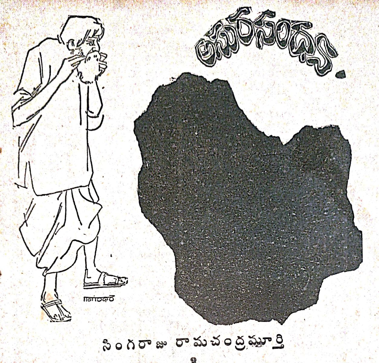 మొన్న తను బస్సు దిగి యీ వూరోస్తున్నప్పుడు యిదే త్రోవనోచ్చేడు. ఆ విషయమే తాతతో చెప్పాడు. తాత ఒకచోట రోడ్డు దిగి ప్రక్క త్రోవని నడవడం ప్రారంభించాడు. అది బీభత్సకరంగా ఉన్న తుమ్మ చెట్ల మధ్య నుంచి పోవాల్సి వున్నది. మనిషి నడవడానికి వీలుగా చిన్న కాలిబాట మాత్రం ఉంది. అటూ యిటూ తుమ్మ తుప్పలూ, కొంచెం దూరంలో సరుగుడు చెట్లూను. తాత అన్నాడు.