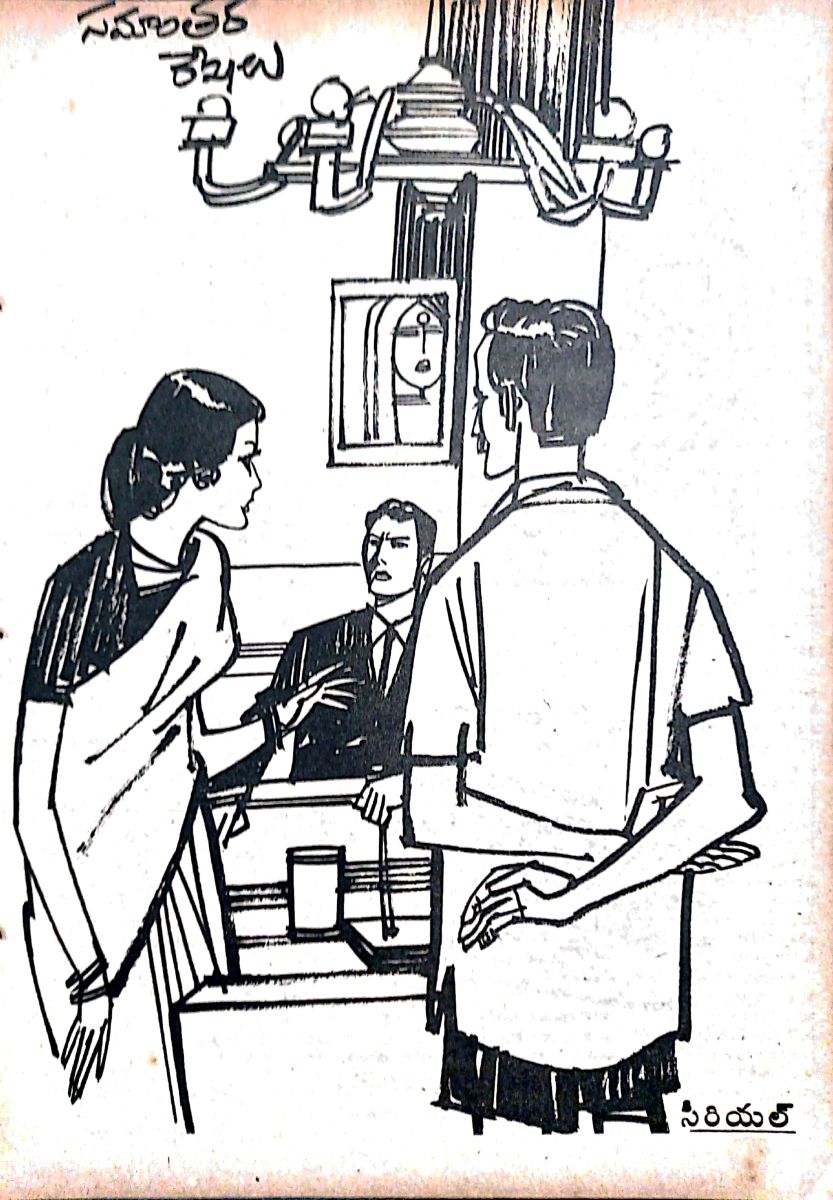 "సునీత, శంభయ్య బయటికి వచ్చారు. సునీత తన సీట్లోకి వెళ్ళింది. పొరుగు లాగి, రెండు తెల్ల కాగితాలు తీసి, ఓ పదిహేను నిమిషాలపాటు ఏమిటో టైప్ చేసింది. శంభయ్య నోరు తెరుచుకుని అంతా చూసి, టైప్ రైటరుకు కవరు వేస్తూంటే ఆ కాగితాలు ఏమిటని అడిగాడు.