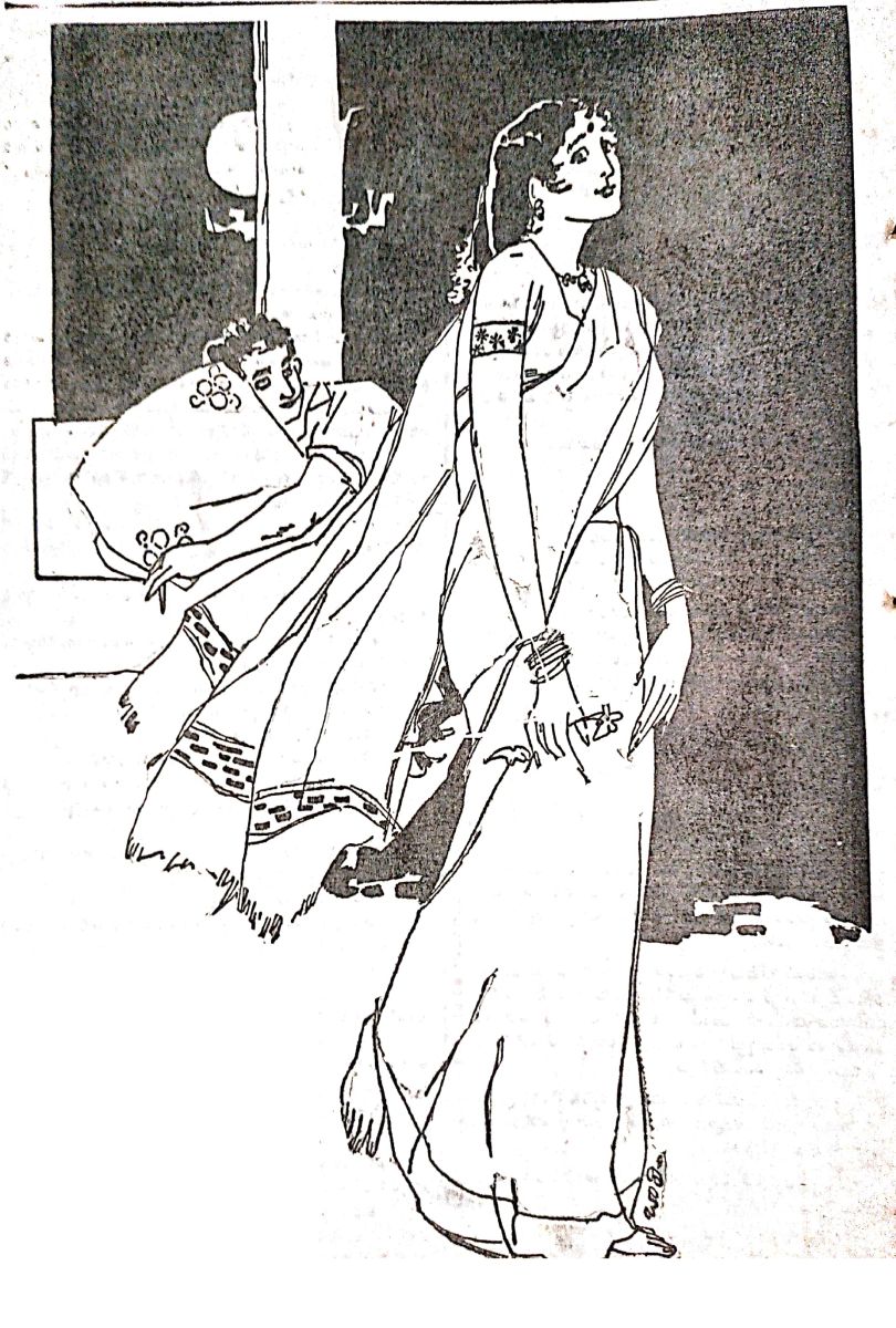 భార్యా భర్తలు పరస్పరం చూచుకుని లోపలి కెళ్ళారు. భార్యకేసి నిశ్చలంతో చూచి "ఆ వాడి చూపులకు తట్టుకోలేకుండా వున్నాను లలితా!" అన్నాడు నరేన్.