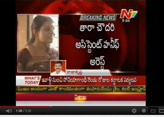 It is to be recalled that Tara Chowdary was arrested by Banjara Hills police on charges of forced prostitution and blackmail when one of her victims Lakshmi, from Vizag, complained to the police. On preliminary investigation police found that Tara was running a high class prostitution and blackmail racket by cheating gullible girls offering them good jobs and roles in Telugu films. It is said that she had close contacts with many VVIPs including political leaders, IAS and police officials. First she used to supply girls to these VVIPs and then record their sleaze audio and video tapes through her assistant Haneef. Later she used to blackmail the victims for huge amounts, which Haneef collected on her behalf. With Haneef's arrest now, the police is confident of getting more information about Tara's crimes and also about her VVIP clients.