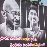 జాతిపిత మహాత్మాగాంధీ, వైఎస్ఆర్ కాంగ్రెస్ పార్టీ అధ్యక్షుడు జగన్ ఫోటోలను ఒకే ఫ్లెక్సీలో పెట్టి గుంటూరులో ప్రదర్శించినందుకుగాను కాంగ్రెస్ ఎం.పి. వి. హనుమంతరావు సికింద్రాబాద్లోని మహాత్మాగాంధీ విగ్రహానికి పాలాభిషేకం చేసి తన నిరసన వ్యక్తం చేశారు. బిందెలతో పాలను తెప్పించి పైరింజన్ ద్వారా గాంధీ విగ్రహానికి పాలాభిషేకం చేశారు. ఇందుకుగాను ఫైరింజన్కు అడ్డొచ్చిందని ఫుట్పాత్ను సైతం పగులగొట్టించగా, దానికి నిరసనలు తెలపడంతో తన స్వంత ఖర్చుతో ఫుట్పాత్ను కట్టిస్తానని హామిఇచ్చారు. జాతిపిత మహాత్మాగాంధీ ఫోటోపక్కన జగన్ ఫోటో పెట్టడం బాధించిందని, అందుకు తాను పాలాభిషేకం ద్వారా మనశ్శాంతి పొందానని చెప్పారు.