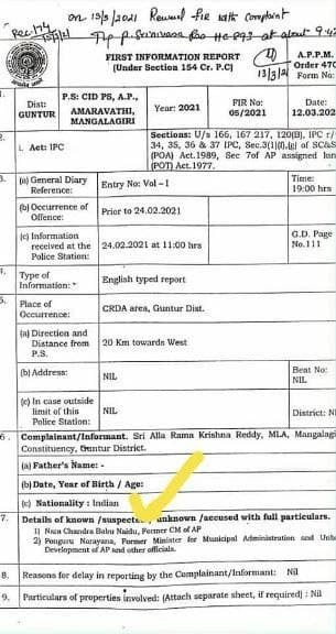 తెలుగుదేశం పార్టీ అధినేత చంద్రబాబు నాయుడుకి ఏపీ సీఐడీ అధికారులు నోటీసులు ఇచ్చారు. మంగళవారం ఉదయం హైదరాబాద్లో చంద్రబాబు ఇంటికి వెళ్లారు. అమరావతి రాజధానిలో అసైన్డు భూముల కొనుగోలు, అమ్మకాలపై ఇటీవల కేసు నమోదైంది. ఈ కేసులో చంద్రబాబుతోపాటు ఎనిమిదిమందిపై కేసులు నమోదయ్యాయి. రాజధాని రైతులు ఇచ్చిన ఫిర్యాదుతో పోలీసులు కేసులు నమోదు చేశారు. 41 సీఆర్పీసీ కింద నోటీసులు ఇచ్చామని సీఐడీ చీఫ్ సునీల్ కుమార్ చెప్పారు. చంద్రబాబుపై 120బీ, 166, 167, 217 ఐపీసీ సెక్షన్ల కింద సీఐడీ కేసు నమోదు చేసింది. దేశంలో ఒక మాజీ ముఖ్యమంత్రిపై ఎస్సీ, ఎస్టీ అట్రాసిటి కోసం పెట్టడం ఇదే తొలిసారని చెబుతున్నారు.