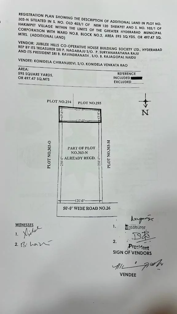 సొసైటీ తాజాగా చిరంజీవికి రిజిస్టర్ చేసిన 595 చదరపు గజాల భూమి, 303ఎన్’లో భాగం కాదు. అసలు అది సొసైటీ భూమే కాదు. సొసైటీ లేఅవుట్’లో ఆ భూమిలేదు. అయినా, సొసైటీ అమ్మేసింది, కారు చౌకగా వచ్చిందని చిరంజీవి కొనేశారని, సొసైటీ సభ్యులు ఆరోపిస్తునారు. నిజానికి ఈ భూమి అయితే ప్రభుత్వ భూమి కావాలి, కాదంటే, జీహెచ్ఎంసీ భూమి అయినా కావాలి, అయినా ప్రభుత్వానికి లేదా జీహెచ్ఎంసీ కనీసం సమాచారం అయిన లేకుండానే. సొసైటీ విక్రయించింది. చిరంజీవి కొనుకున్నారు. రిజిస్ట్రరార్’ సార్ రిజిస్టర్ చేసేశారు. ఇలా తమది కాని ప్రభుత్వ భూమిని ప్రభుత్వ అనుమతి లేకుండా విక్రయించడం సొసైటీ చేసిన నేరమైతే, చిరంజీవి తెలిసి కొన్నారో, తెలియకే కొన్నారో గానీ, సొసైటీ సభ్యులు చేస్తున్న ఆరోపణలు నిజం అయితే, అయన చేసింది కుడా నేరమే అవుతుందని అంటున్నారు.