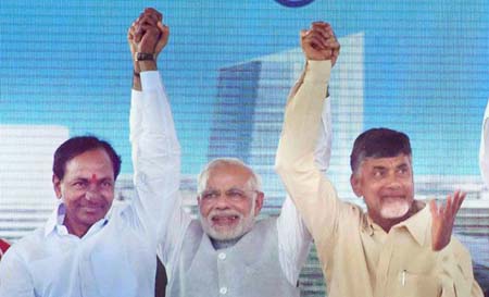 అయితే ఇప్పుడు అందరి డౌట్ ఏంటంటే.. మోడీ కేసీఆర్ కు ఫేవర్ గా ఉన్నారా.. లేక చంద్రబాబుకు ఫెవర్ గా ఉన్నారా.. అని. ఎందుకంటే ఈ మధ్య నరేంద్ర మోడీ, కేసీఆర్ పై బాగానే అభిమానం చూపుతున్నట్టు కనిపిస్తోంది. కేసీఆర్ని పలుమార్లు అభినందిస్తూ కూడా వచ్చారు. ఇప్పుడు ఫస్ట్ ర్యాంకు ఇచ్చేశారు. ఇక టీడీపీ-బీజేపీ మిత్రపక్షం కాబట్టి.. చంద్రబాబుకు, మోడీ మధ్య మిత్రుత్వం ఉంది. అయితే మిత్రపక్షమన్న పేరు తప్ప, చంద్రబాబుని ఎప్పుడూ నరేంద్రమోడీ మిత్రుడిలా చూసిన సందర్భాల్లేవు. ఈ విషయాన్ని ఇప్పటికే చాలాసార్లు నిరూపించారు మోడీ జీ కూడా. ఏపీకి ఇస్తానన్న ప్రత్యేక హోదా ఇవ్వకపోవడం.. ప్రత్యేక ప్యాకేజీ విషయంలో కూడా ఏం చెప్పకపోవడం.. ఇంకా కేంద్రం నుండి రావాల్సిన నిధుల విషయంలో కూడా ఏపీపై చిన్నచూపు చూపడం వంటివి చేస్తూనే వచ్చారు. ఆఖరికి ఏపీ రాజధాని శంకుస్థాపన రోజు కూడా ఏం ఇవ్వకుండా మొంచి చేయి చూపించారు. ఇలా, ఎప్పుడూ ఎక్కడా ఏ సందర్భంలో చంద్రబాబుని, ఓ ముఖ్యమంత్రిగా.. మిత్రుడిగా నరేంద్రమోడీ లెక్కల్లోకి తీసుకున్న సందర్భాలే లేవు.