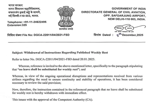 ఇటీవలి కాలంలో ఇండిగో విమానాలు వరుసగా రద్దు కావడంతో ప్రయాణికులు ఇబ్బందులు ఎదుర్కొంటున్న విషయం తెలిసిందే. ఈ నేపథ్యంలో విమానయాన కార్యకలాపాలు నిలకడగా కొనసాగేందుకు పౌర విమానయాన శాఖ కీలక నిర్ణయం తీసుకున్నది. పలు విమానయాన సంస్థల విజ్ఞప్తులను పరిగణనలోకి తీసుకున్న డీజీసీఏ పైలట్ల విధులపై విధించిన ఇటీవల విధించిన ఆంక్షలను సడలించింది. ఈ మేరకు ఉత్తర్వులు జారీ చేసింది.
