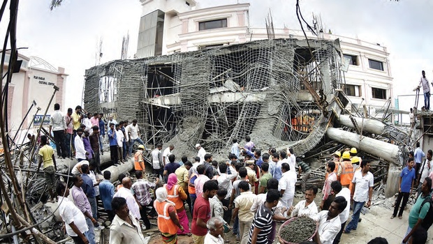 హైదరాబాద్ ఫిలింనగర్ కల్చరల్ సెంటర్ వద్ద ఆదివారం నిర్మాణంలో ఉన్న భవనం కూలిన ఘటనలో ఇద్దరు మరణించగా..10 మంది వరకు తీవ్రంగా గాయపడ్డారు. ప్రమాద కారణాలు అన్వేషించేందుకు జేఎన్టీయూ నిపుణుల బృందం ఘటనా స్థలిని సందర్శించింది. ఈ పరిశీలనలో చేదు నిజాలు వెలుగులోకి వచ్చాయి. నిర్మాణానికి అనుమతుల నుంచి నిర్మాణ పనుల వరకు ప్రతి దానిలో అక్రమాలు బయటపడ్డాయి. ఫిలింనగర్ కల్చరల్ సెంటర్కి 1996లో మున్సిపల్ కార్పోరేషన్ ఆఫ్ హైదరాబాద్ నుంచి 6,188 చదరపు మీటర్ల విస్తీర్ణంలో జి+2 భవన నిర్మాణానికి అనుమతి తీసుకున్నారు. దానిని ఉల్లంఘిస్తూ ఏకంగా గ్రౌండ్ ప్లస్ 3 అంతస్థుల భవనం నిర్మించారు.