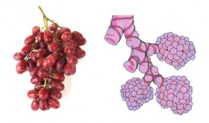 Grapes and Lungs: A bunch of grapes represent the alveoli of lungs. The alveoli are the end parts of the lungs which pass on the oxygen to blood stream. Fresh fruit like grapes would always help for healthy lungs. Besides, proanthocyanidin- a chemical which appears in grape seeds is found to be highly beneficial in asthma.