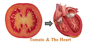 Tomatoes and Heart: Cut through a tomato and have a close look at it. The cross section of a tomato represents the chambers of our heart. Besides Vitamin C, tomatoes are rich in a chemical called Lycopene. Studies have found that Lycopene is highly effective in reducing the risk of coronary blockages and cancer.