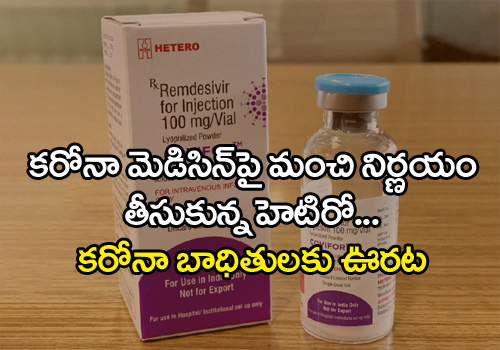 కరోనా మెడిసిన్ పై మంచి నిర్ణయం తీసుకున్న హెటిరో.. కరోనా బాధితులకు ఊరట