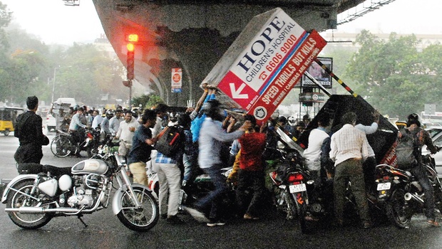 Eight cars were crushed under a massive pillar of a hoarding which fell due to the gale. No one was injured though. 105 emergency teams of the corporation and 29 of the Water Board were engaged in clearing roads. Nearly 40 cranes were deployed to clear fallen trees and other major debris.