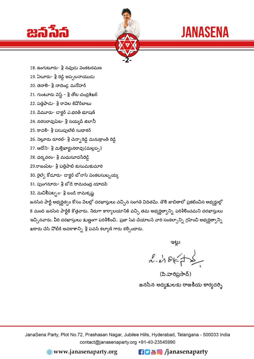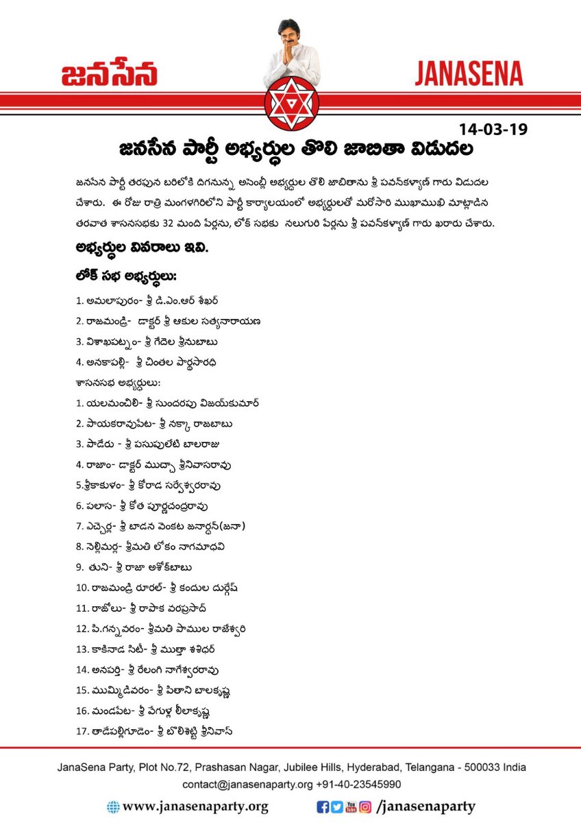 జనసేన అభ్యర్థుల తొలి జాబితా విడుదల