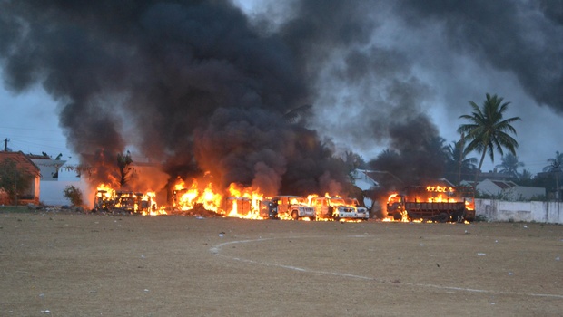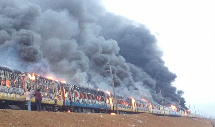 ఆందోళనకారుల్ని చూసిన ప్రయాణికులు ఒక్కసారిగా భయపడి పరుగులు పెట్టారు. అందరూ దిగిపోయాక..బోగీలకు ఆందోళనకారులు నిప్పంటించారు. దీంతో 23 బోగీలు తగులబడిపోయాయి. అంతటితో ఆగకుండా పట్ణణంలోకి ప్రవేశించి తుని పోలీస్స్టేషన్పై దాడి చేసి సామాగ్రిని, వాహనాల్ని తగులబెట్టారు. పోలీసులపై దాడులకు దిగడంతో కొంతమందికి గాయాలయ్యాయి. పట్టణంలో దుకాణాలు మూసేయాలని హెచ్చరిస్తూ సామాగ్రిని ధ్వంసం చేశారు. ఈ బీభత్సానికి తుని వాసులు ప్రాణాలు అరచేతిలో పెట్టుకుని క్షణమొక యుగంలా గడిపారు. మరుసటి రోజు వరకు అడుగు బయట పెట్టాలంటేనే వణికపోయారంటే అల్లరిమూకలు సాగించిన విధ్వంసాన్ని అర్ధం చేసుకోవచ్చు. ఈ విధ్వంసంలో రైల్వే, పోలీసు, ఇతర ప్రభుత్వ ఆస్తులకు సంబంధించి వంద కోట్లకు పైగా నష్టం జరిగింది. జరిగిన నష్టానికి సంబంధించి ముద్రగడతో పాటు పలువురిపై 73 కేసులు నమోదయ్యాయి.