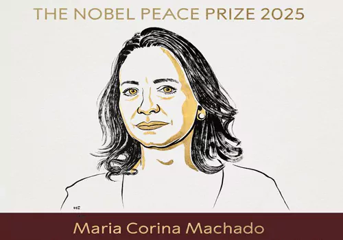 2025కి గాను ప్రతిష్ఠత్మక నోబెల్ శాంతి వెనిజూలకు చెందిన పార్లమెంట్ సభ్యురాలు మరియా కొరినా మచాడోకు లభించింది. డెముక్రటిక్ రైట్స్,శాంతి కోసం ఆమె చేసిన కృషిని గుర్తించిన నార్వేజియన్ నోబెల్ కమిటీ ఈ అవార్డుకు ఎంపిక చేసింది. ఆమె డిక్టేటర్షిప్ నుంచి ప్రజాస్వామ్యం వైపు నడిపించారు. మరోవైపు నోబెల్ శాంతి బహుమతి కోసం అనేక ప్రయత్నాలు చేసినప్పటికీ అమెరికా అధ్యక్షుడు డొనాల్డ్ ట్రంప్ను వరించలేదు.