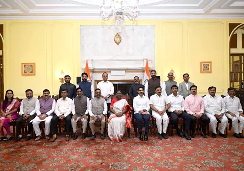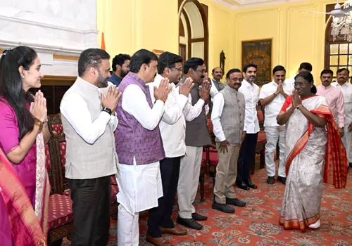 కూటమి ఎంపీలతో కలిసి ఢిల్లీలో రాష్ట్రపతి ద్రౌపది ముర్మును మంత్రి నారా లోకేశ్, కేంద్ర మంత్రి భూపతిరాజు శ్రీనివాస వర్మ మర్యాదపూర్వకంగా కలిశారు. అమరావతి బిల్లుకు ఆమోదం తెలిపినందుకు ఆమెకు ధన్యవాదాలు తెలిపారు. ఈ సందర్భంగా అమరావతి చారిత్రక, సాంస్కృతిక ప్రాధాన్యాన్ని రాష్ట్రపతికి లోకేశ్ వివరించారు.