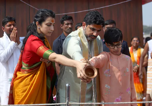 ప్రయాగ్ రాజ్ లో జరుగుతున్న మహాకుంభమేళాలో ఆంధ్రప్రదేశ్ ఐటీ శాఖ మంత్రి నారా లోకేష్ పాల్గొన్నారు. ప్రయాగ్ రాజ్ లోని పవిత్ర త్రివేణి సంగమంలో ఆయన తన సతీమణి నారా బ్రాహ్మణి, కుమారుడు నారా దేవాన్ష్ తో కలిసి పుణ్య స్నానం ఆచరించారు. ప్రత్యేక పూజలు నిర్వహించారు.