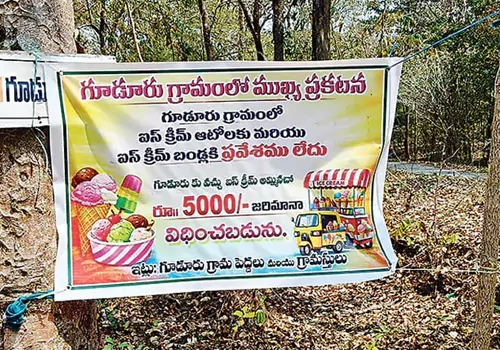 ఆంధ్రప్రదేశ్ రాష్ట్రంలోని అల్లూరి సీతారామరాజు జిల్లాలోని చింతూరు మండలానికి చెందిన గూడూరు గ్రామ ప్రజలుస్థానిక యువత, చిన్నారుల ఆరోగ్య రక్షణను దృష్టిలో ఉంచుకొని ఒక కీలక నిర్ణయం తీసుకున్నారు. గూడూరు గ్రామ పరిధిలోకి ఐస్క్రీం బండ్లు రాకుండా పూర్తిగా నిషేధం విధించారు. అంతేకాకుండా గ్రామ పెద్దలు గ్రామస్తులు కలిసి గ్రామంలో ముఖ్య కూడళ్ల వద్ద ఫ్లెక్సీలు కూడా ఏర్పాటు చేశారు... ఐస్ క్రీమ్ అమ్మే ఐస్ క్రీమ్ లు బండ్లు, ఆటోలకు తమ గ్రామంలోకి ప్రవేశం లేదు. ఒకవేళ...ఎవరైనా ఈ నిషేధాన్ని ఉల్లంఘిస్తే ₹5,000 జరిమానా విధిస్తామని స్పష్టం చేశారు.