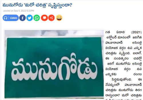 ఎన్నికల ఖర్చు విషయంలో మునుగోడు ఉప ఎన్నిక మరో చరిత్ర సృష్టిస్తుందా? అన్న అనుమానాలు ముందు నుంచీ ఉన్నాయి. మనుగోడు మరో చరిత్ర సృష్టిస్తుందా? అన్న శీర్షికన తెలుగువన్ గత నెల 4వ తేదీనే మునుగోడులో డబ్బు ప్రవాహంపై వార్త ప్రచురించింది. ఎన్నికల చరిత్రలో, ఓటర్లను ప్రలోభ పెట్టడంలో ఇప్పటికే కొత్త చరిత్రను సృష్టించిన హుజూరాబాద్ ఉప ఎన్నిక రికార్డును మునుగోడు చెరిపేస్తుందని తెలుగువన్ ముందే అంచనా వేసింది. అందుకు అనుగుణంగానే హుజూరాబాద్ ను మించి మునుగోడులో డబ్బు మద్యం ప్రవాహాలు జోరందుకున్నాయి.