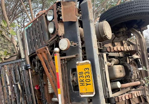 దట్టమైన పొగమంచు కారణంగా ట్రక్కు డ్రైవర్కు ముందున్న రహదారి స్పష్టంగా కనిపించకపోవడంతో వాహనం అదుపు తప్పి బోల్తా పడింది. దీంతో ట్రక్కు పై ఉన్న జేసీబీ అదే సమ యంలో ఎదురుగా బైక్పై వస్తున్న తండ్రి లాలయ్య, అతని కుమారుడు రిత్విక్(8)పై పడింది. ఈ ప్రమాదంలో రిత్విక్ అక్కడిక్కడే మరణించగా, తండ్రి లాలయ్య తీవ్ర గాయాలతో ఆస్పత్రిలో చికిత్స పొందుతూ మరణించారు. సమయంలో మరో స్కూటీపై వస్తున్న లాలయ్య భార్య మేఘన, కూతురు స్వల్ప గాయాలతో బయటపడ్డారు.